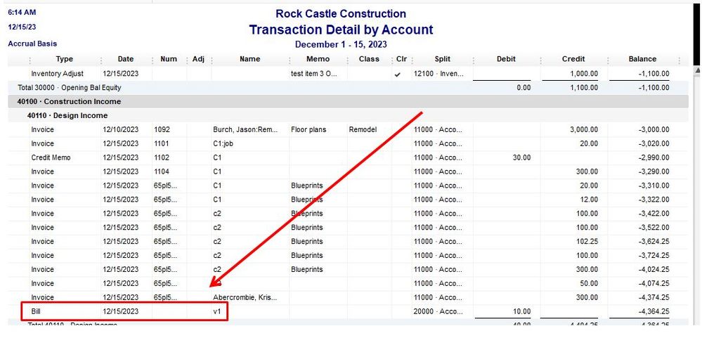 The Transaction Detail by Account report shows yous all the transactions and total for each business relationship in your chart of accounts. Thus, if you've created a bill or expense using your Contraction Income account, this will unremarkably prove in the written report.